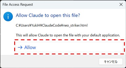 ファイルを開く許可を求められた場合は「Allow」で許可します。