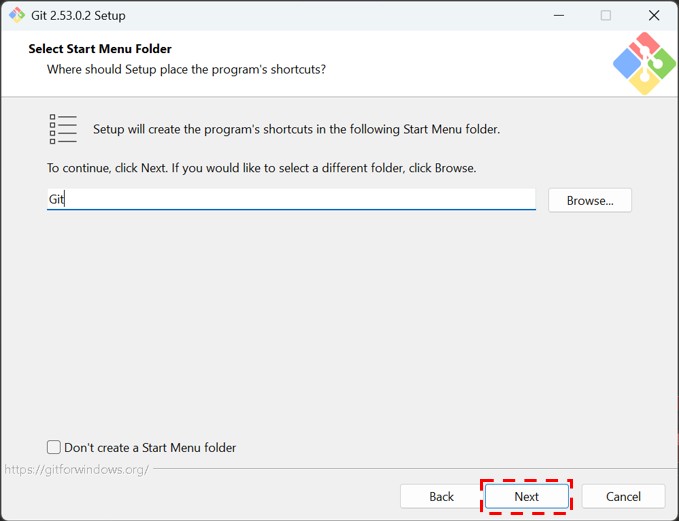 Select Start Menu Folderはそのままで問題ありません。Nextをクリックします。