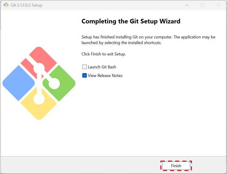 Gitのインストールが完了しました!Finishをクリックします。