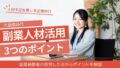 副業人材の活用は、単なるコスト削減策ではありません。社内のリソースだけでは手が回らない領域を補い、事業を加速するための有効な手段なのです。